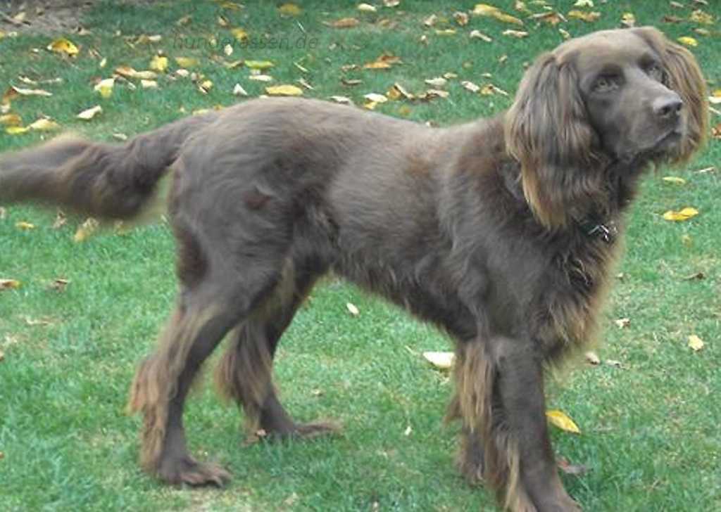 Лангхаар – достаточно рослый пес, высота которого составляет 58-70 см в холке, а масса варьируется в пределах 30 кг. На сухой удлиненной голове имеются выразительные темные глаза и широкие свисающие уши. Крепкий, гармонично сложенный корпус с хорошо развитыми мышцами покрыт густой шерстью разной длины. Что касается окраса, то он может быть светло-коричневым или цвета опавшей листвы. При этом стандарт допускает наличие проседи или небольших белых отметин.